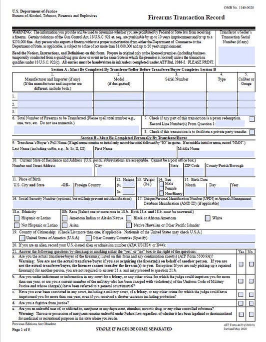 4473 FORMS NON CCW HOLDERS
